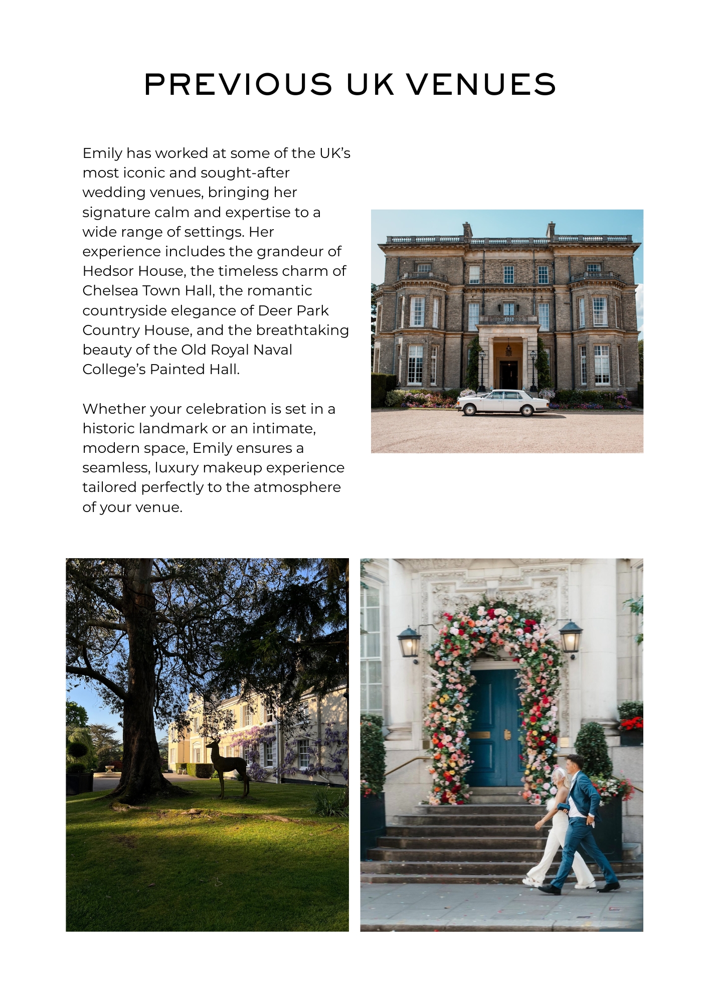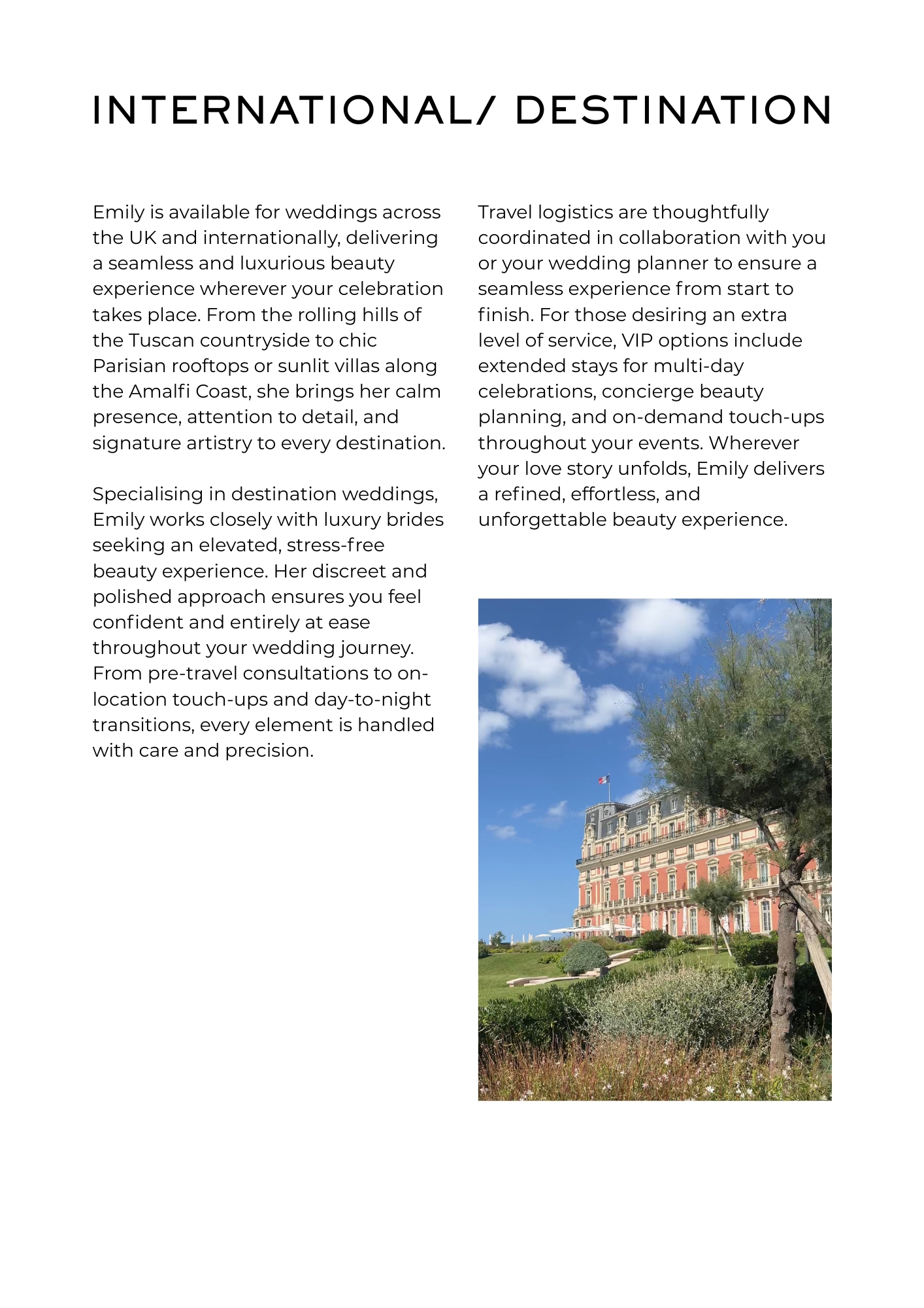 With over six years of experience and a First-Class Honours degree in Hair and Makeup for Fashion, from the world renowned London College of Fashion, Emily brings an elevated, editorial touch to every look. Her artistry blends modern luxury with timeless elegance, grounded in a deep understanding of skin, photography, and personal styling.